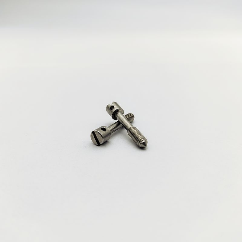 Corrosiebestendige sleufafdichtingsschroeven gemaakt van gemaakt van316L roestvrij staalmetdiep smalle slot (0,6 mm),,gedeeltelijke draad, Enstompe punt. Weerstaan1000 uur zoutspray. Beschikbaar in M4-M8-maten metgeëlektroliceerde afwerking.