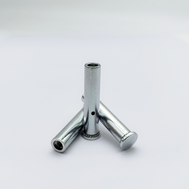 Blind gat klinknoermoer kolommen voor dunne vellen. A2-70 SS, gekartelde onderhead voor anti-rotatie, niet-volledige interne thread. Blue-wit zinkplating. M3-M8-maten. Voor servers, kasten en apparaten. Aangepaste lengtes.